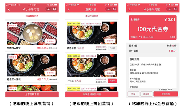 好的餐饮系统还能根据餐厅的情况随时开展多种营销功能(比如储值,红包、套餐、拼团、代金券)方便餐厅随时根据自己的顾客和店内的情况开展。